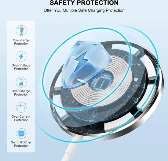 Charge without removing your case (≤0.15 inch). MagSafe ring or magnetic case recommended for non-iPhone users.