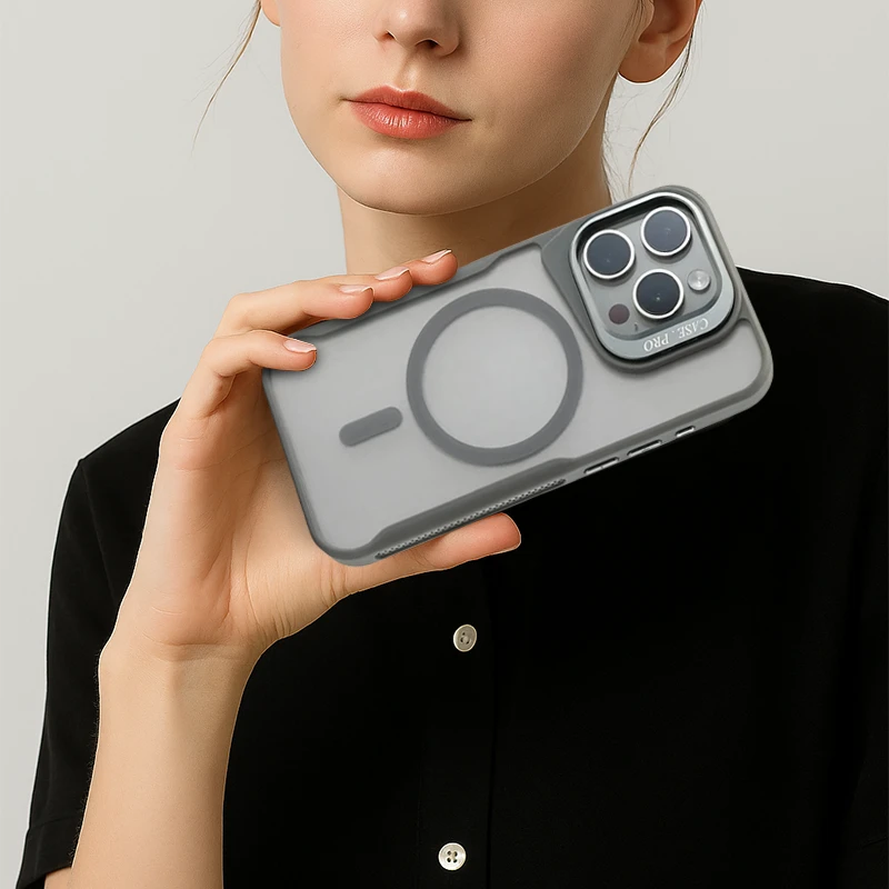 Inspired by the sharp edges and thermal control of modern performance gear, the Black Phantom Case integrates TPU resilience, a metal ring stand, and magnetic alignment — all without breaking the clean silhouette. Built for fast-paced users who hate compromise.