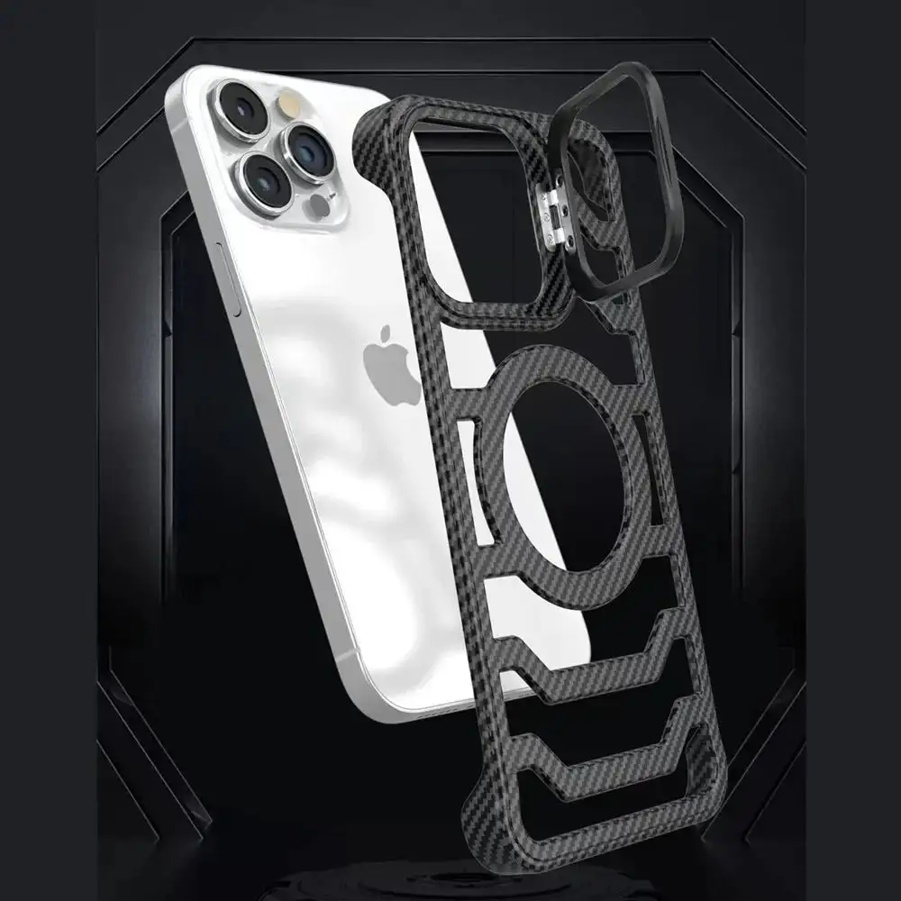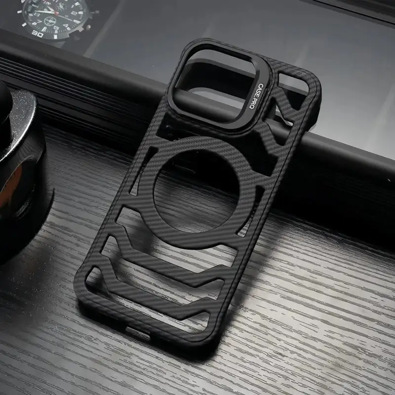 Snaps instantly to all MagSafe chargers and accessories — clean, reliable, effortless.Built-in Lens Kickstand